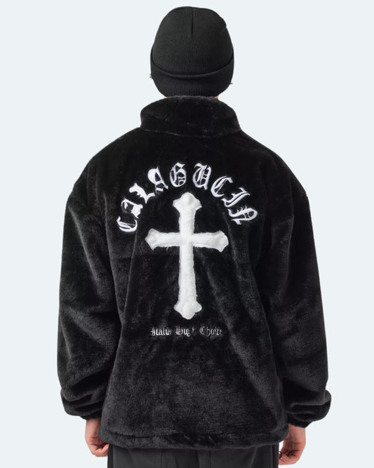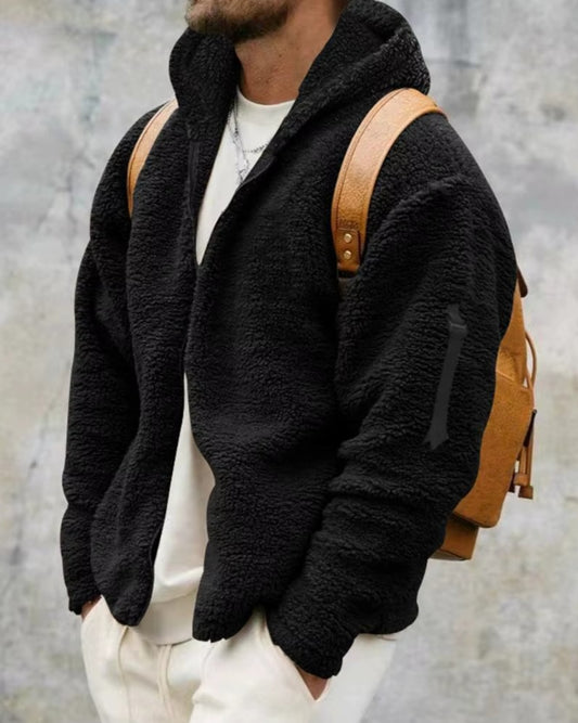 Elegant Fleece Jacket - Black, Gray