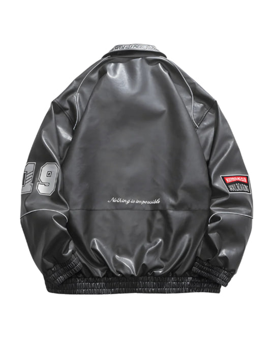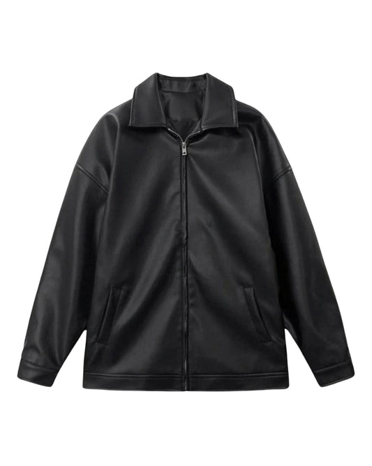 Oversize Leather Jacket - Black