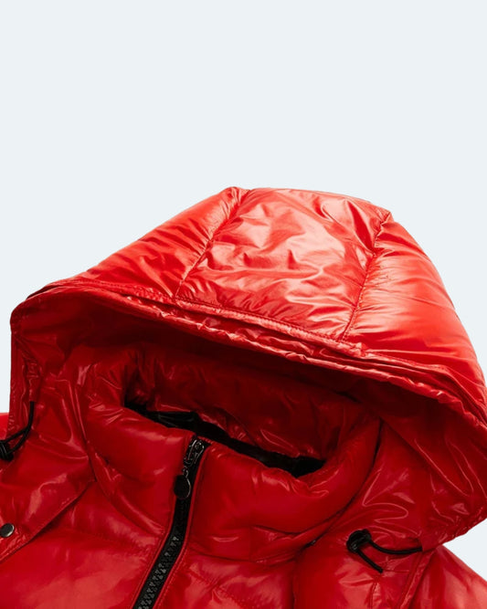 Shiny Puffer Jacket - Red & Black